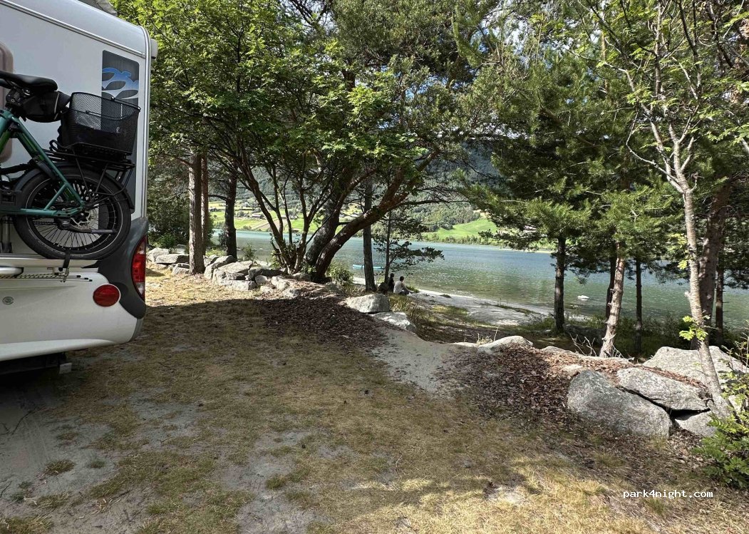 Lovely campsite with lots of spaces in between the trees by the water for a van. Friendly, with all the services. We paid 190NOK. 2 people no electricity. Showers are 10 NOK for 8 minutes. Also 5 NOK option.