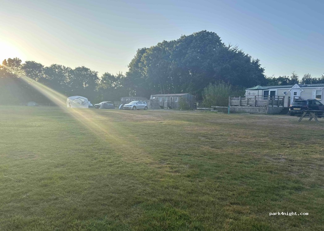 Great camp site. Friendly hosts, no dogs, but car campers, tents and motor homes are welcome. Electric pitches available. Free roaming chickens too!