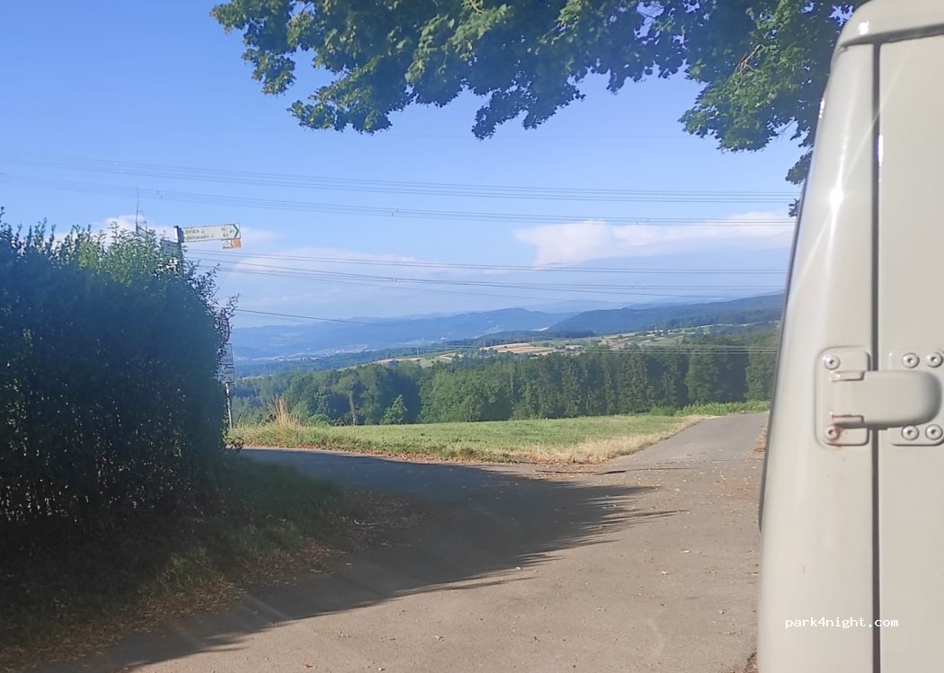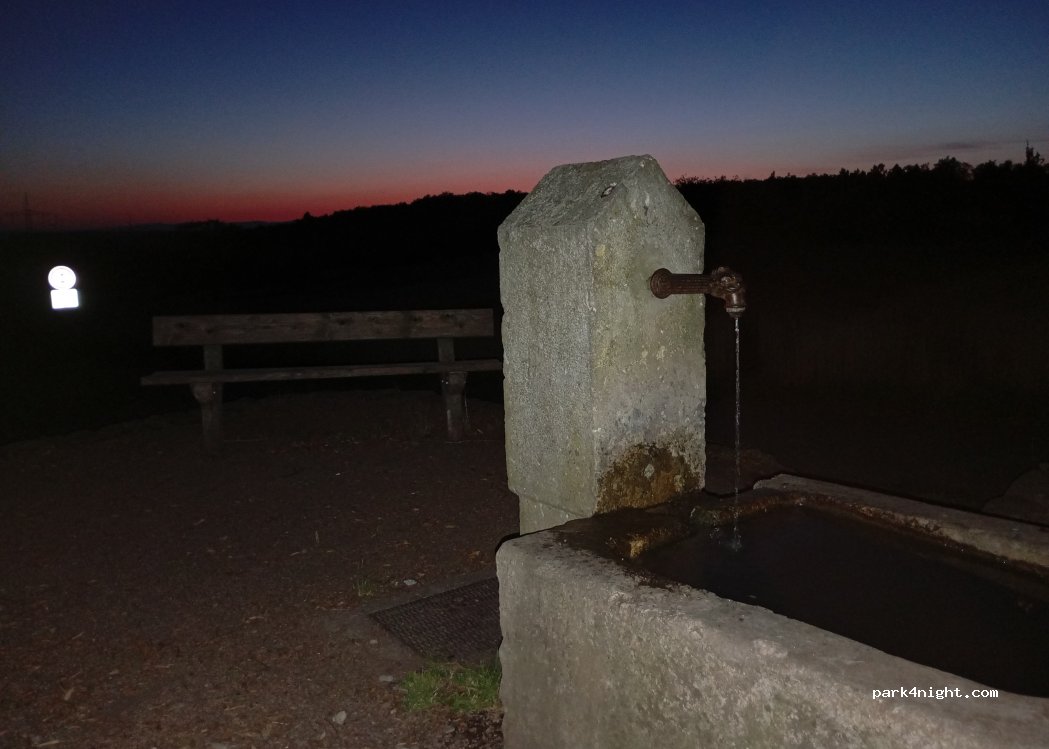 Wir haben nicht auf dem Parkplatz geparkt, weil er uns zu schräg war. Am Brunnen war gerade genug Platz, das wir mit dem Transporter. gerade stehen konnten.