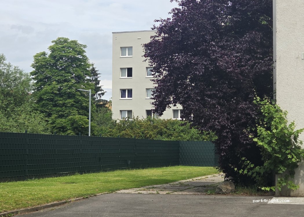 Privately managed parking space on private property, located on a meadow next to a former restaurant, on a fenced and enclosed site, with a maximum of 3 spaces, almost level, 350 m from the supermarket, 350 m from the tram stop, 3 km from the main train station and the city center, quiet residential area.