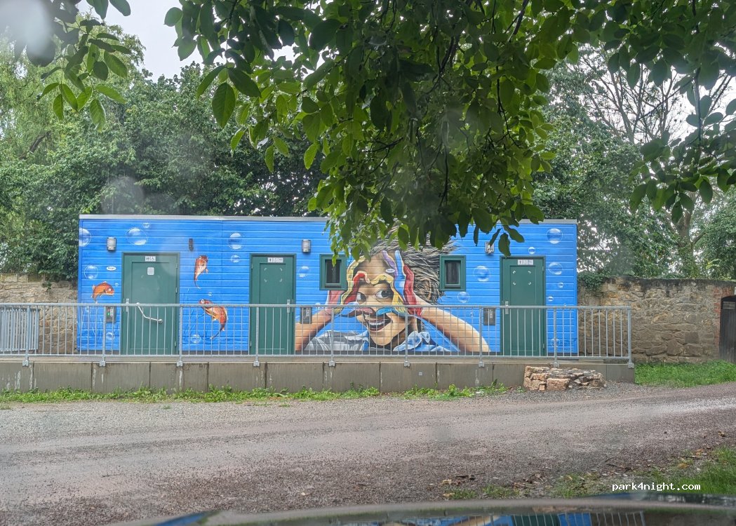 Zugang zum Wc benötigt 1€ Stück, die Dusche benötigt einen Schlüssel und für 1€ bekommt man 3min warmes Wasser. Ich hatte glück und es war jemand mit Schlüssel vor Ort, der mich dann freundlicher Weise in die Dusche gelassen hat. Anlage war sehr sauber und kurz nachdem ich dort war kam auf eine Reinigungskraft.