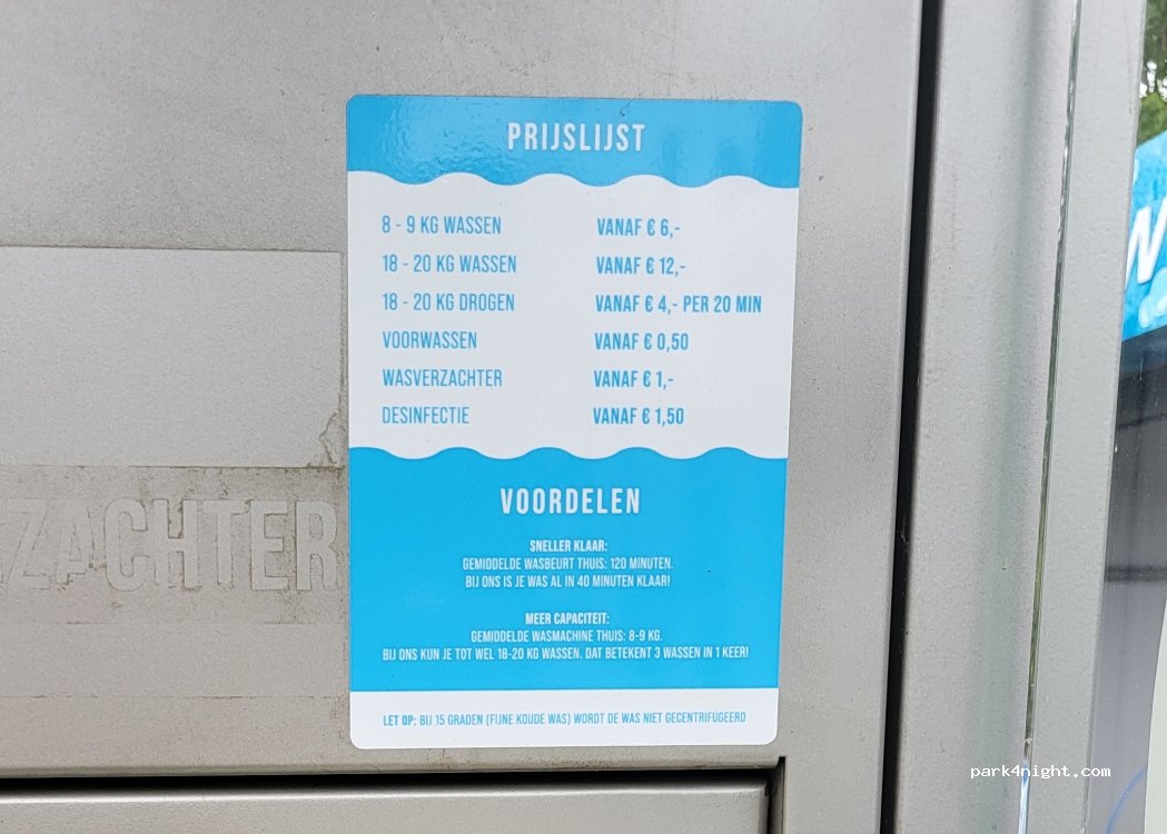 Wasruimte naast een tankstation. Vier wasmachines met vier parkeerplaatsen direct voor de deur.