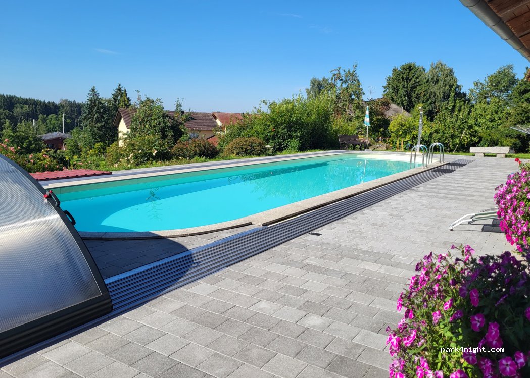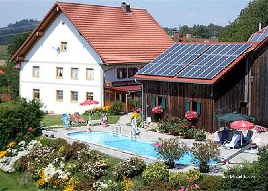 Ruhiger Stellplatz auf einem familienfreundlichen Ferienhof im Bayerischen Wald. Ideal für Naturliebhaber und Familien mit Kindern. Zugang zur Dusche am Pool.