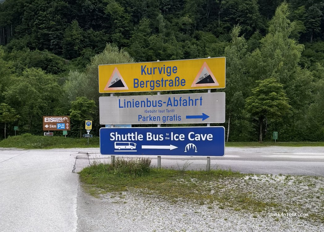 Parking diurno para la salida de las lanzaderas a la cueva de hielo, reservado para los visitantes de la cueva.