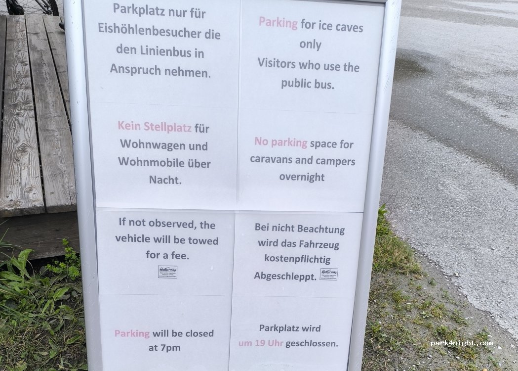 Tagesparkplatz für die Abfahrt der Shuttles zur Eishöhle, reserviert für Besucher der Höhle.