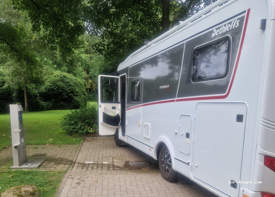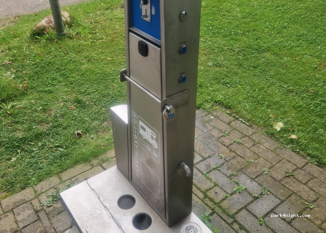 VE for motorhomes/campers. The station is located in the courtyard/parking lot of the Harpstedt Fishing Club, not directly at the motorhome parking area 200 meters away. Grey and black water disposal and fresh water (somewhat hidden and protected on the side of the pump) are available for 50 cents. Very clean and well-maintained.