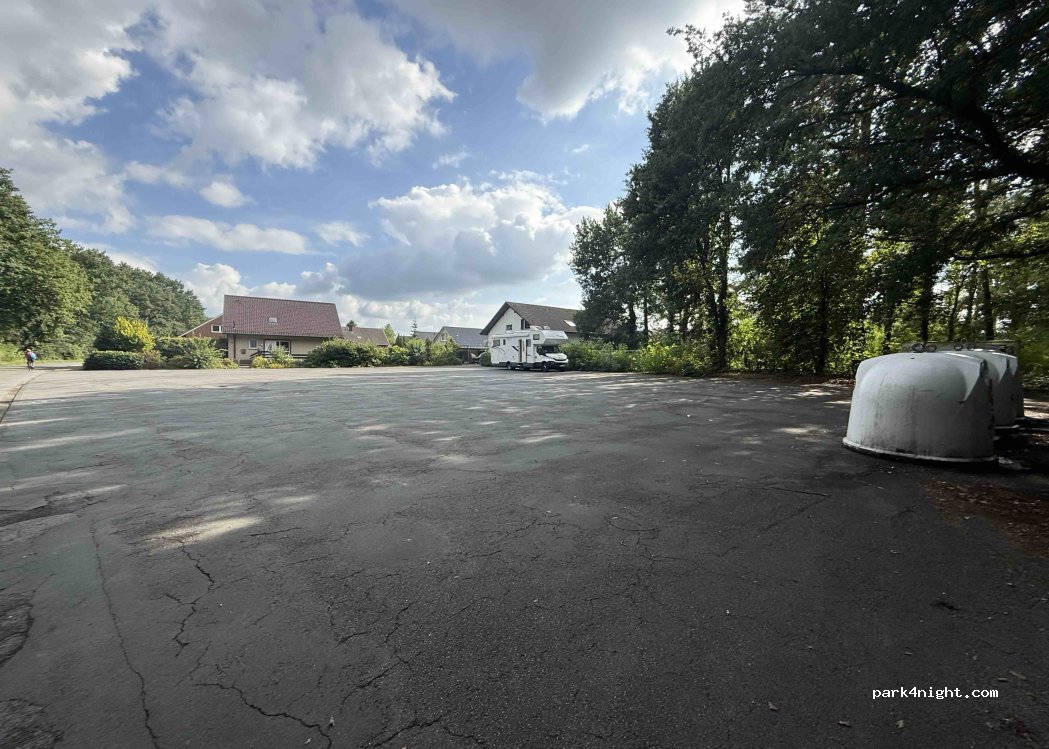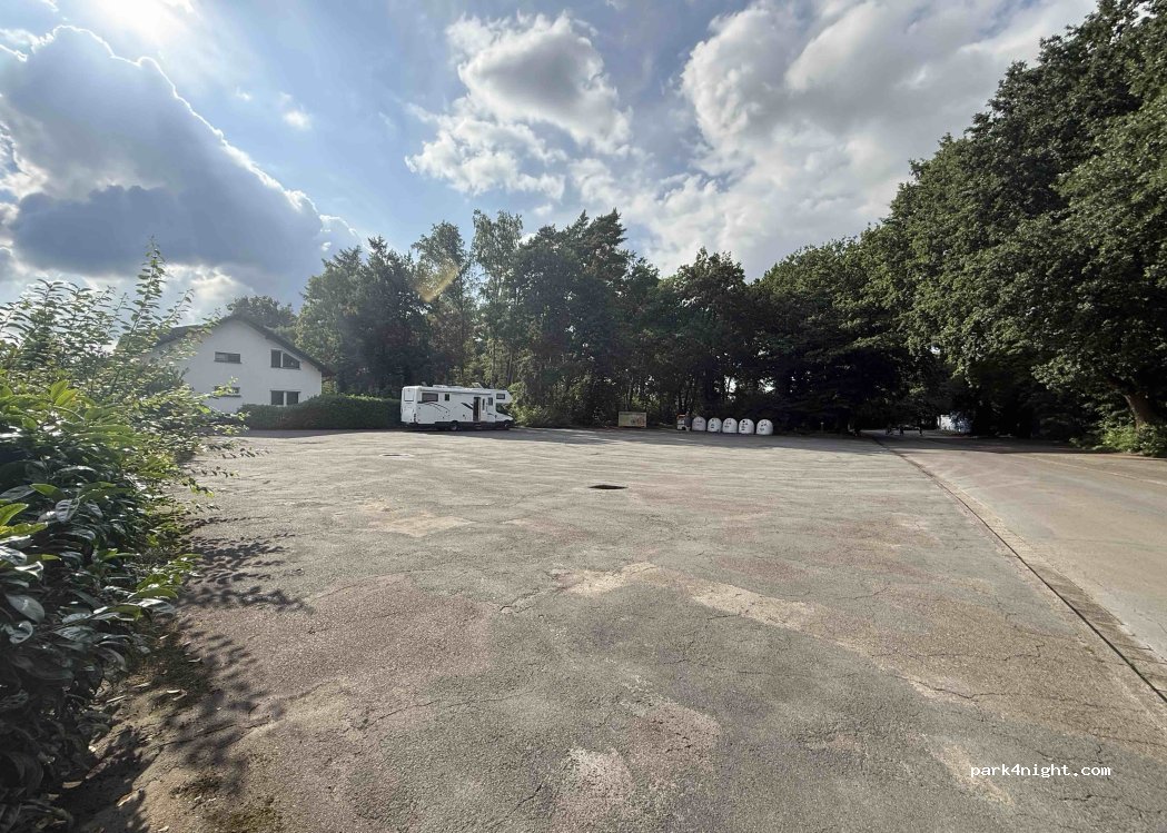 Größere Parkfläche ggü. dem Öffentlichen Schwimmbad. Für 1-2 Nächte ohne Versorgung sehr gut geeignet, wenn kein Campingverhalten wie z.B. Stühle rausstellen gezeigt wird. Nachts sehr ruhig. An der Straße entlang gibt es sonst auch Parkflächen