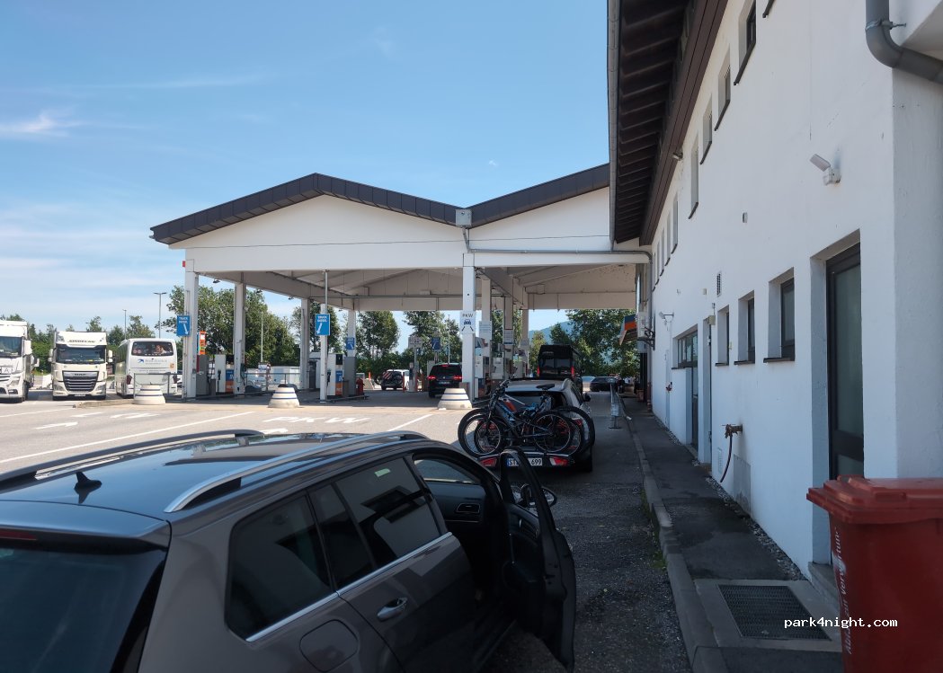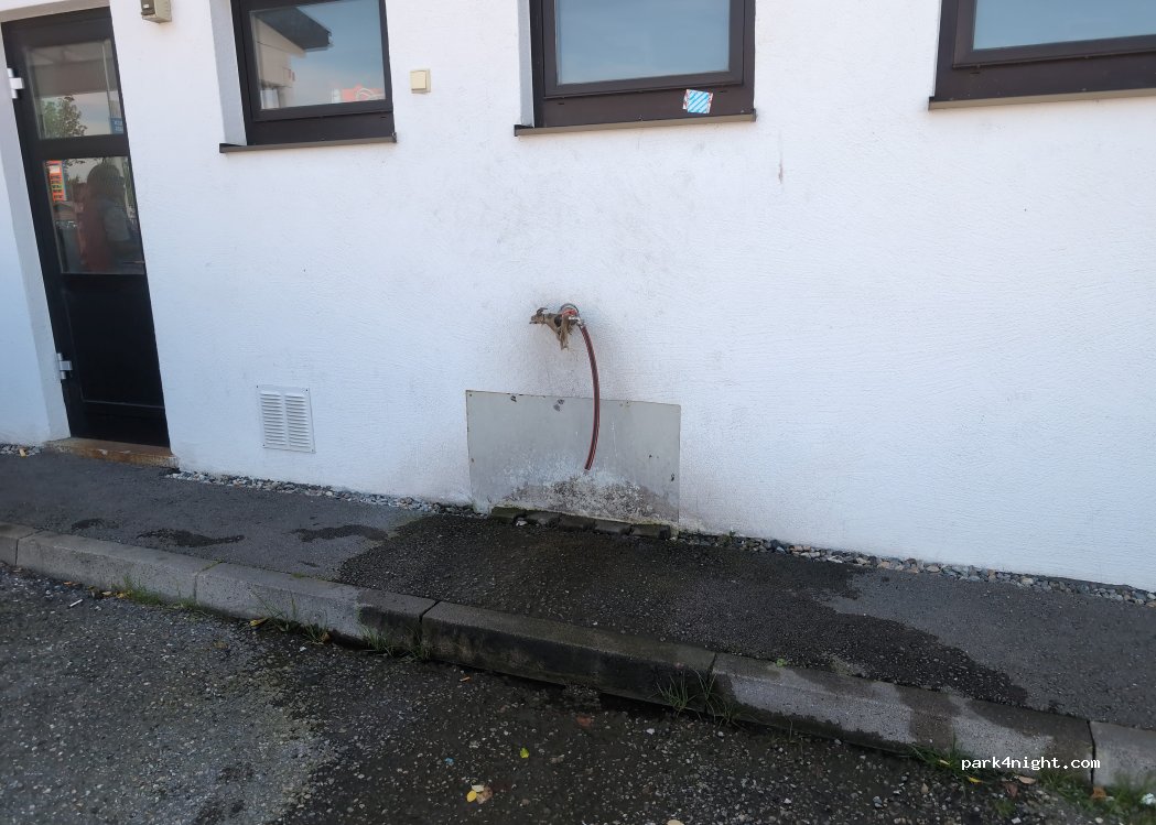 LkW Raststätte mit Tankstelle. An der Tankstelle gibt es einen Wasserhahn mit Frischwasser.
