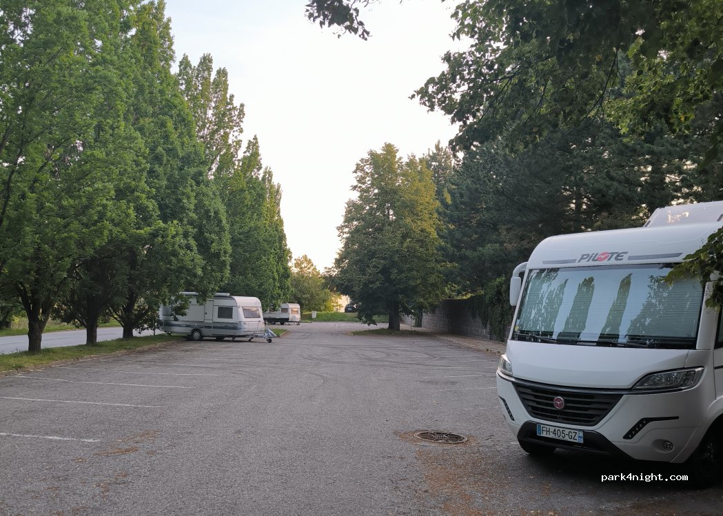 Parking du cimetière offrant de nombreux espaces. Situé sur une route très fréquentée. Les toilettes sont situées à l'intérieur du cimetière, à l'entrée.