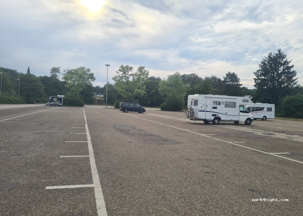 Parking proche du centre ville. pas de services sur place. benne à verre à environs 300m. plutot tranquille. plusieurs camping car Allemand garé