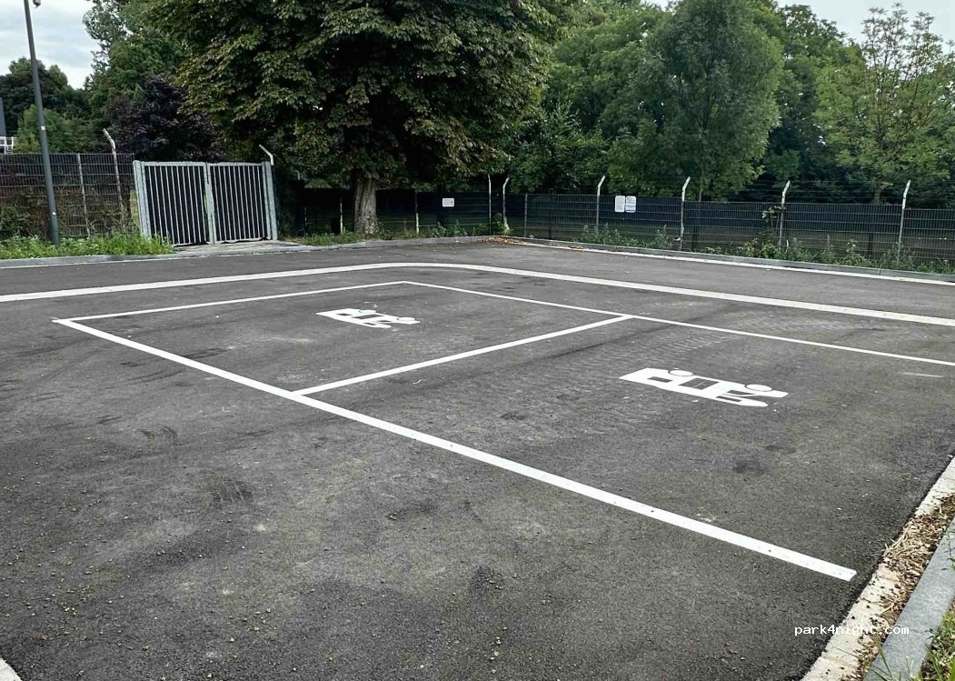 Wir standen hier,um den Mittelalterlichen Weihnachtsmarkt zu besuchen und die Stadt mit ihren vielen Geschäften. Mülleimer am Platz. Tagesticket 5€/24h nur per App oder EC-Karte möglich. Keile werden benötigt. Platz ist gepflastert,man steht ganz hinten. Gegen Fluglärm hatten wir Ohropax Ein paar Meter weiter ist ein Penny.