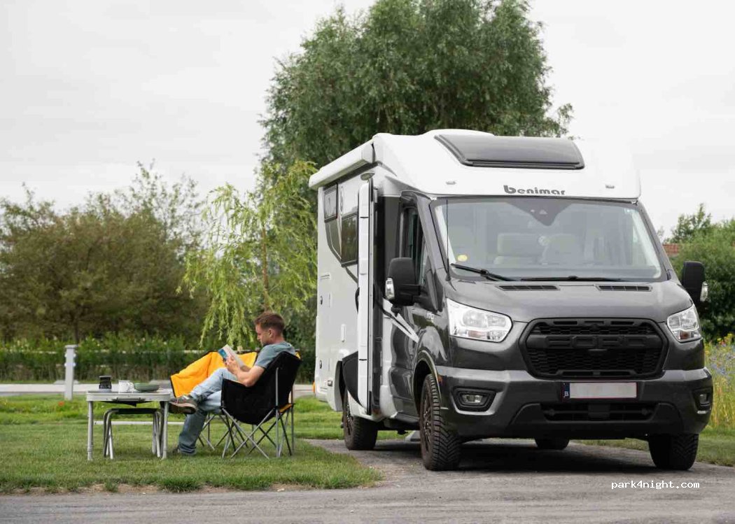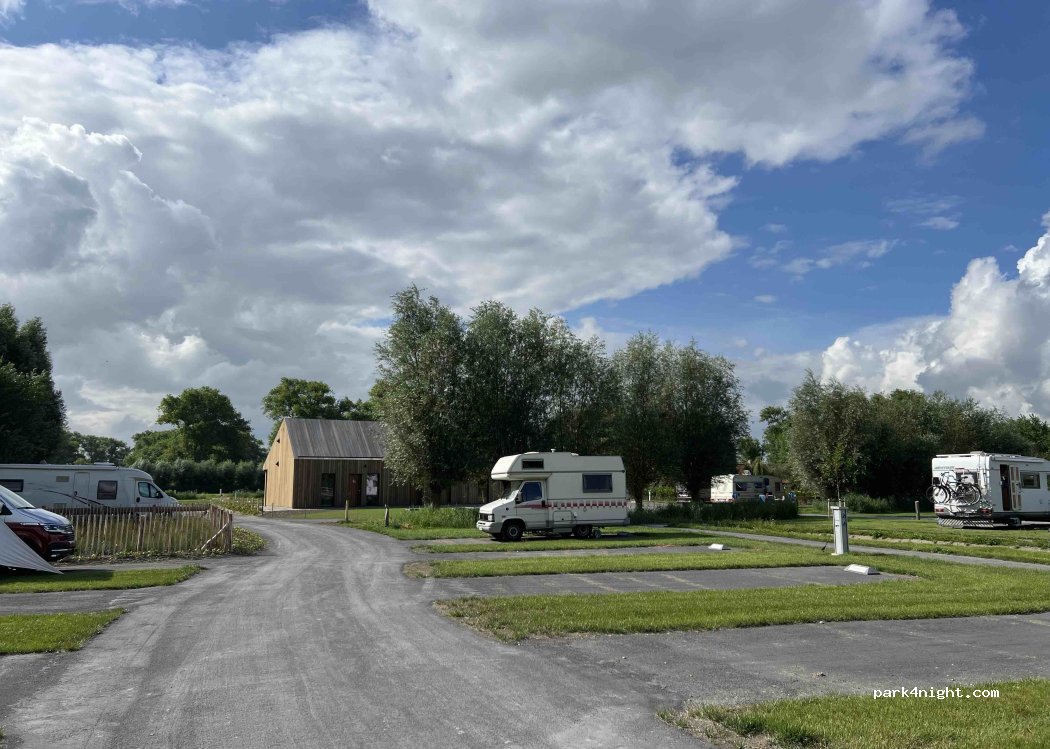 Nouveau camping tout neuf avec sanitaires. Accès possible de nuit par borne CB. Emplacements pour grand camping car. Sanitaires avec toilettes douches. Seul bémol l eau des douches est comptée. Les robinets fonctionnent avec difficulté pour restreindre l accès à l eau. Dommage cela nuit vraiment à l ensemble. Après les emplacements ne sont pas très grands. Le tarif n' est pas donné 47 € pour 2 adultes 2 enfants et l électricité 6A. Mais bon ça sauve de la misère quand on veut visiter le centre ville de Bruges qui est à 5,6 km.