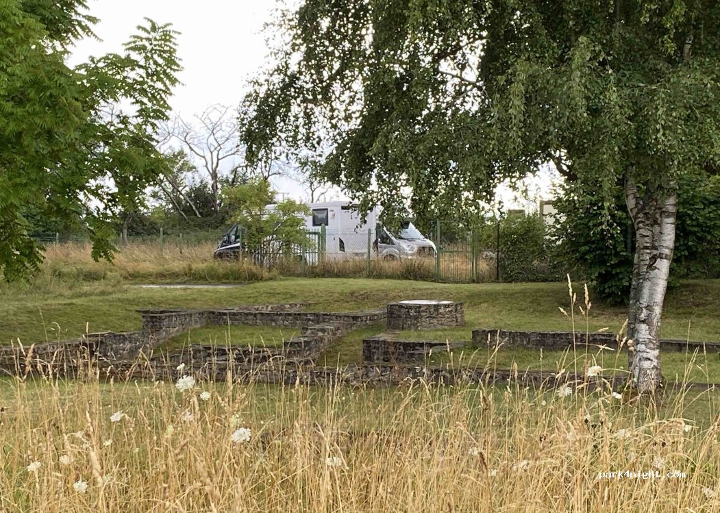 Pequeño aparcamiento en el sitio romano de Ricciacum, apartado de la carretera.
