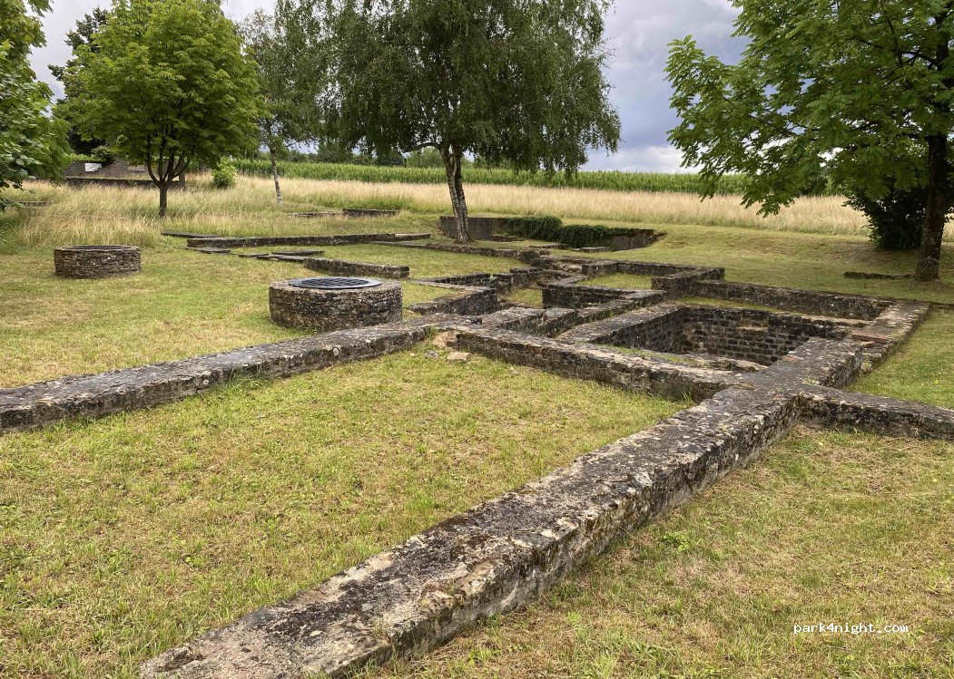 Kleiner, von der Straße zurückversetzter Parkplatz an der Römerstätte Ricciacum.