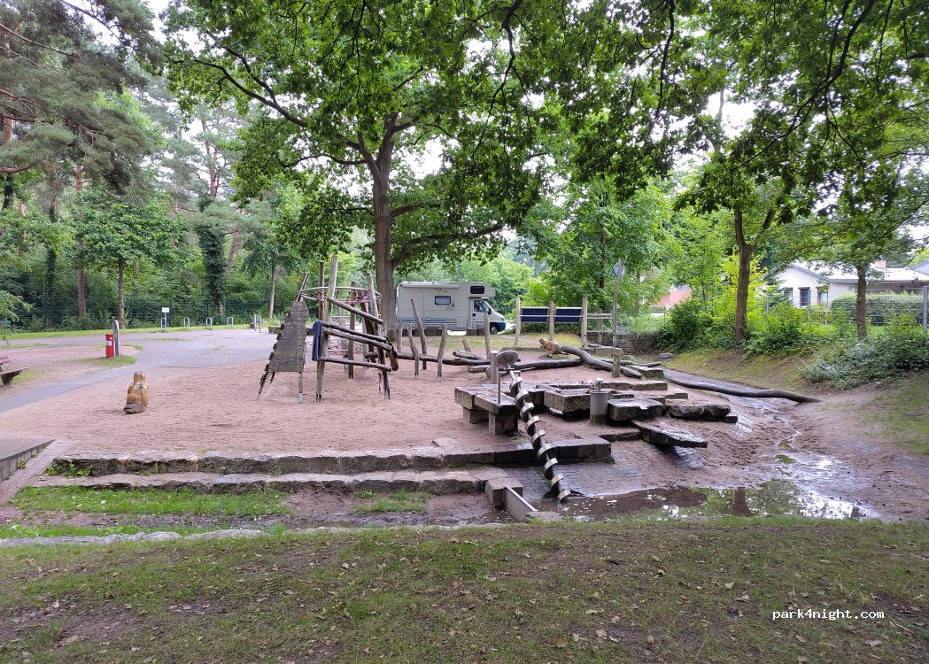 Endroit idéal pour une halte avec des enfants. Belle aire de jeux dans un quartier calme et arboré. Peut-être aussi un bon endroit pour dormir.