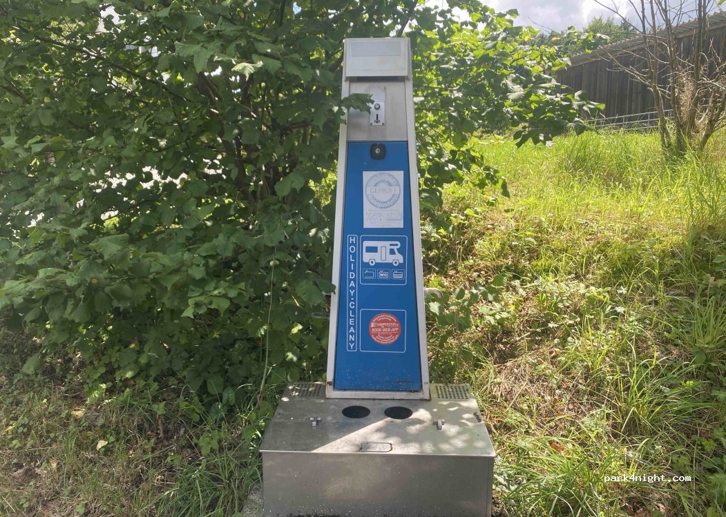 Paid campervan space. Free grey water disposal. Holiday cleaning station present, but out of order.