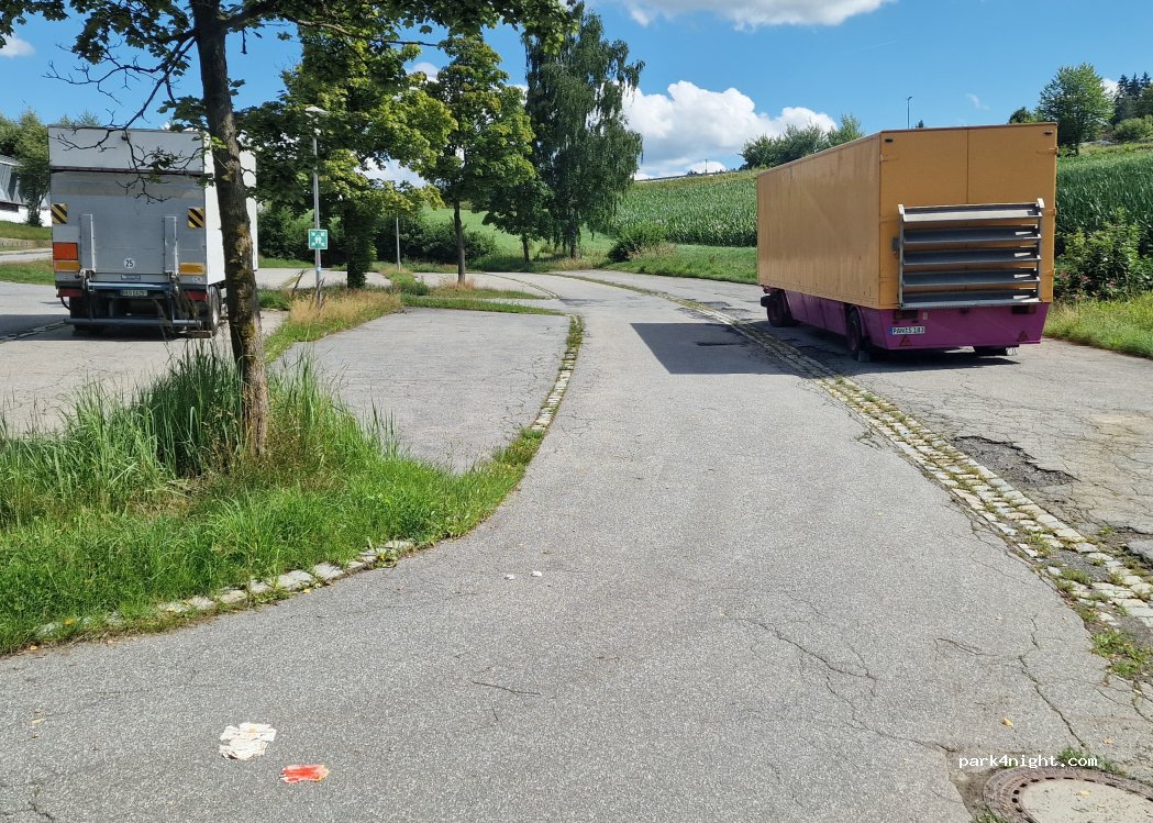 Parkplatz neben der Eissporthalle Befestigter ziemlich ebener Untergrund. Wir standen hier über Nacht ohne Probleme.