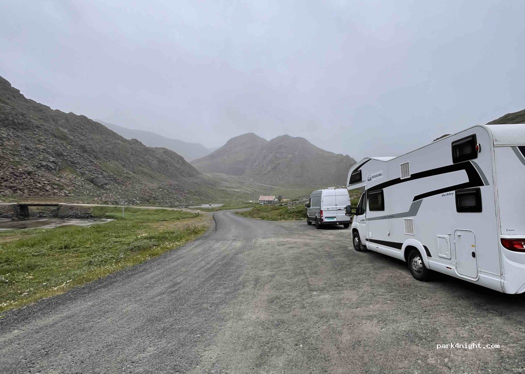 Nada más que un estacionamiento de dos plazas con una bonita vista a las montañas y una playa donde puedes pescar mejillones, pinzas de cangrejo, etc. Incluso nadar si quieres.