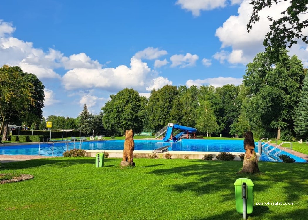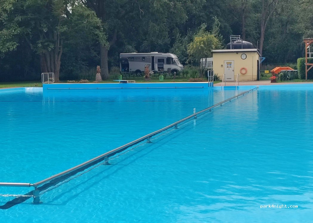 Schöner kleiner Stellplatz an einem gepflegten Freibad, Eintritt 4,-Euro, Platz ist gebührenfrei inkl. Strom, Wasser möglich, Betreiber sind sehr freundlich und hilfsbereit, Supermarkt, Bäcker und Fleischer sind 10 Gehminuten entfernt, über die Straße und gerade runter der Hauptstraße folgen. Vielen Dank, wir kommen wieder!