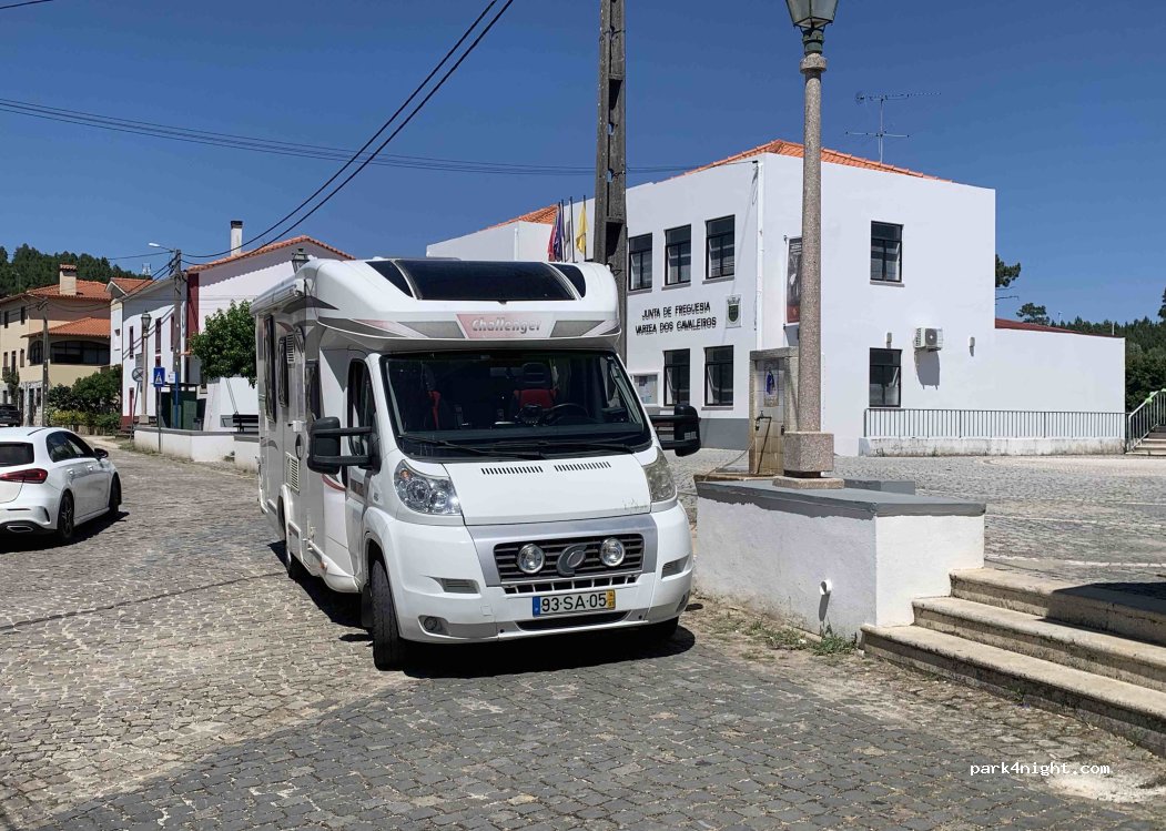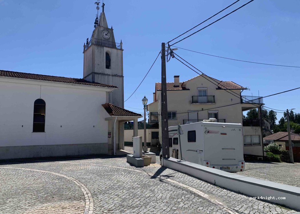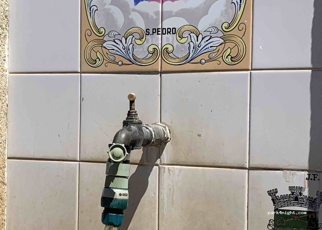 Water spot with not threaded tap beside street nearby church in VÁRZEA DOS CAVALEIROS village center. Good flow. Toilets on the square.