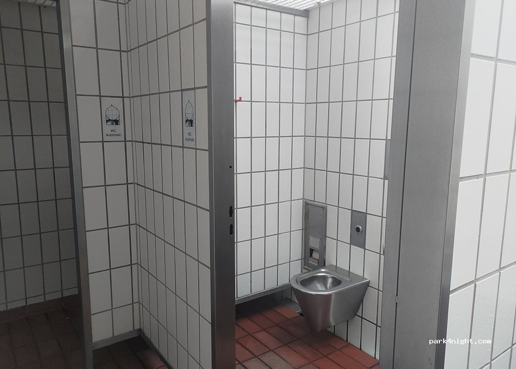 On y trouve quelques tables de pique-nique et de grandes poubelles. Les toilettes gratuites sont en bon état.