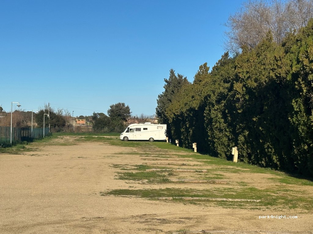 Nous sommes arrivés sur cette aire à 22h, il y avait encore de nombreuses places. Il y avait un match sur le terrain jouxtant l'aire ce qui a généré du bruit mais l'environnement reste calme malgré tout. Il n'y a effectivement pas d'accès aux services mais cet endroit a le mérite d'accueillir les camping-car gratuitement ce qui n'est pas courant dans le secteur. Merci à la ville.