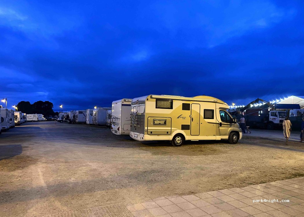 estacionamento a uma distância de 15minutos do centro que vale muito a pena visitar ao fim do dia. sem serviços mas ao contrário dos comentários, não achei a zona barulhenta, muito pelo contrário, dormimos muito bem. Todos com muito respeito pelo local. chegamos pelas 18h e existiam diversos lugares disponíveis. é também possível estacionar na ruas ao lado também.