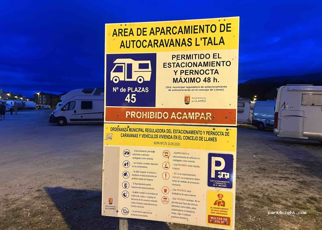 Antes de llegar a Llanes hablamos con la Policía Local la cual nos dijo que para FURGONETAS CAMPER podíamos pernoctar en la calle Francisco Mijares (al lado del área de autocaravanas). Simplemente agradecer a las autocaravanas que pese a todo el espacio que tienen, se ponen donde no es y dejan a los demás sin espacio. Por la mañana vino la Policía Local a multar a aquellas que estaban mal situadas