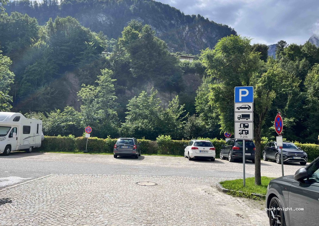 Free parking area for campers during the day. Easy bus route to Salzburg. Bus 840 only 1 mins walk to the stop. Space for a least 7 campers but NOT overnight.
