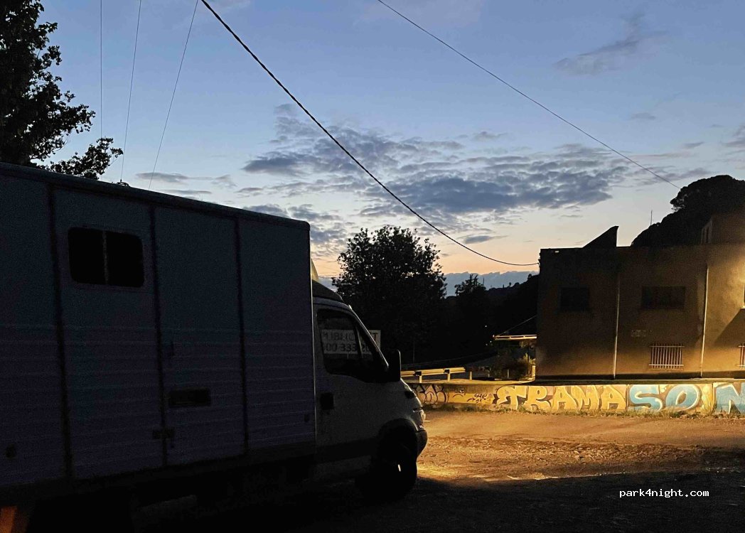 There is not much choice near Girona. At night it is quick to find a place, for one night, ok. but under electric wires, not great. There is a hole in the back.