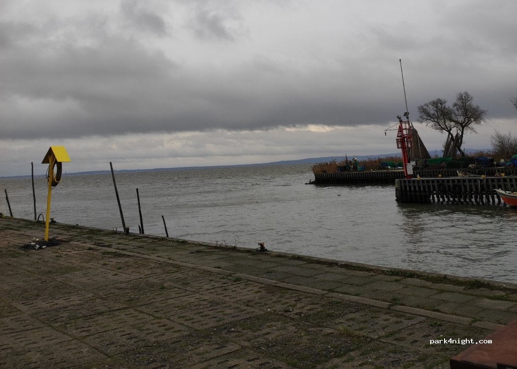 Bezpłatne miejsca postojowe w małym porcie. Jest nieoznakowany kontener sanitarny (wc, bieżąca woda, zlewy, prysznic), w zasadzie nie wiadomo czy można z niego korzystać. Miejsca postojowe są pochyłe. Niedaleko do sklepu.