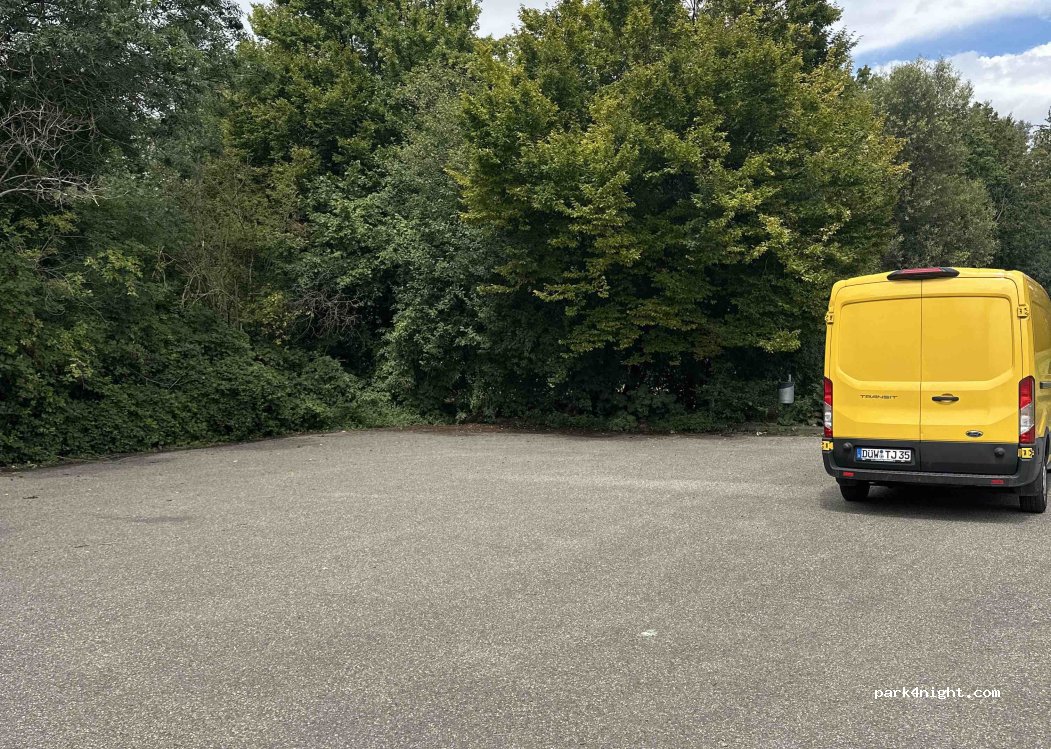 Amplio aparcamiento no lejos de la autopista, muy tranquilo por la noche.