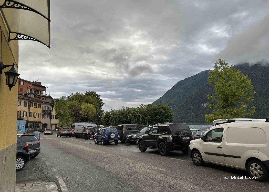 Parcheggio gratuito direttamente in riva al lago. Adatto a veicoli fino a 5,4 metri. Area balneabile, ristorante, bar, ecc. Affollato durante il giorno, ma abbastanza tranquillo di notte, nonostante sia proprio sulla strada. Il camion della spazzatura è passato la mattina presto.