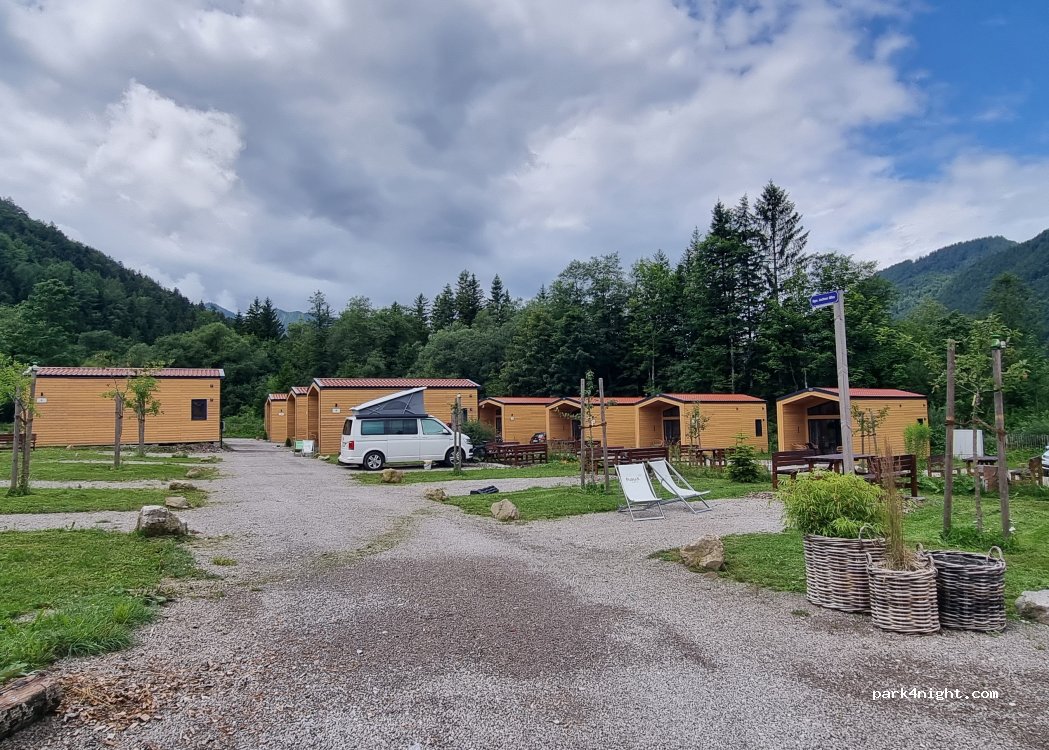 Camper van pitches are available; campers larger than 6 meters cannot be accommodated. Each pitch has a table.