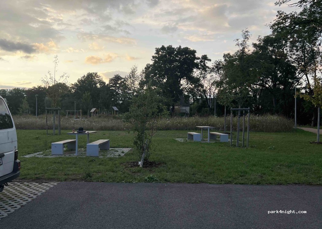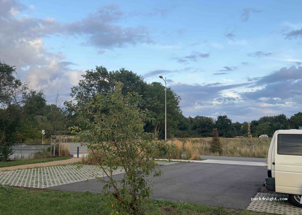 Nous avons pu passer une nuit au calme, pas de nuisances sonores, nous sommes allés à la cité du train en vélo avec les enfants. Très pratique avec tous les aménagements pour les cyclistes. Cependant notre camping car fait 7m c’était tout juste, un camping car à la fois, afin de laisser la place aux véhicules légers pour se garer et profitez du parc pour enfants au fond du terrain. Respectez l’environnement !