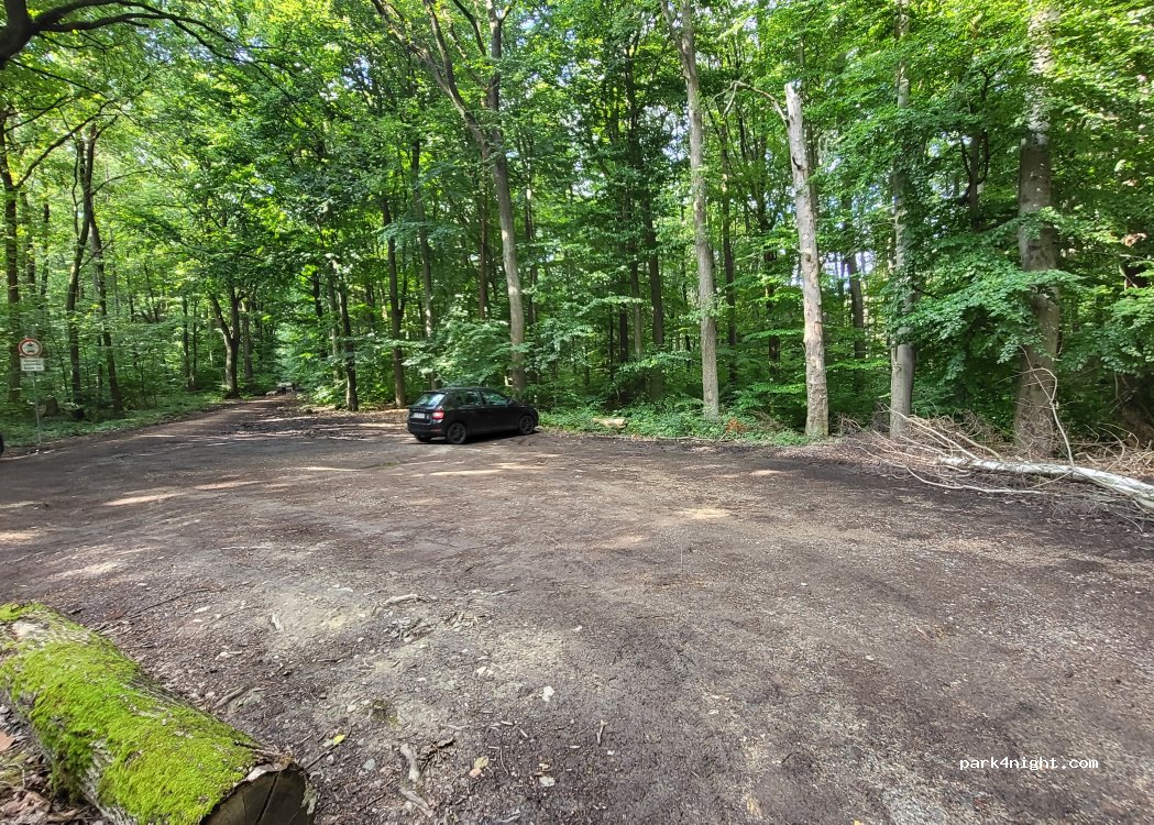 Leicht abschüssiger Parkplatz an wenig befahrenen Straße