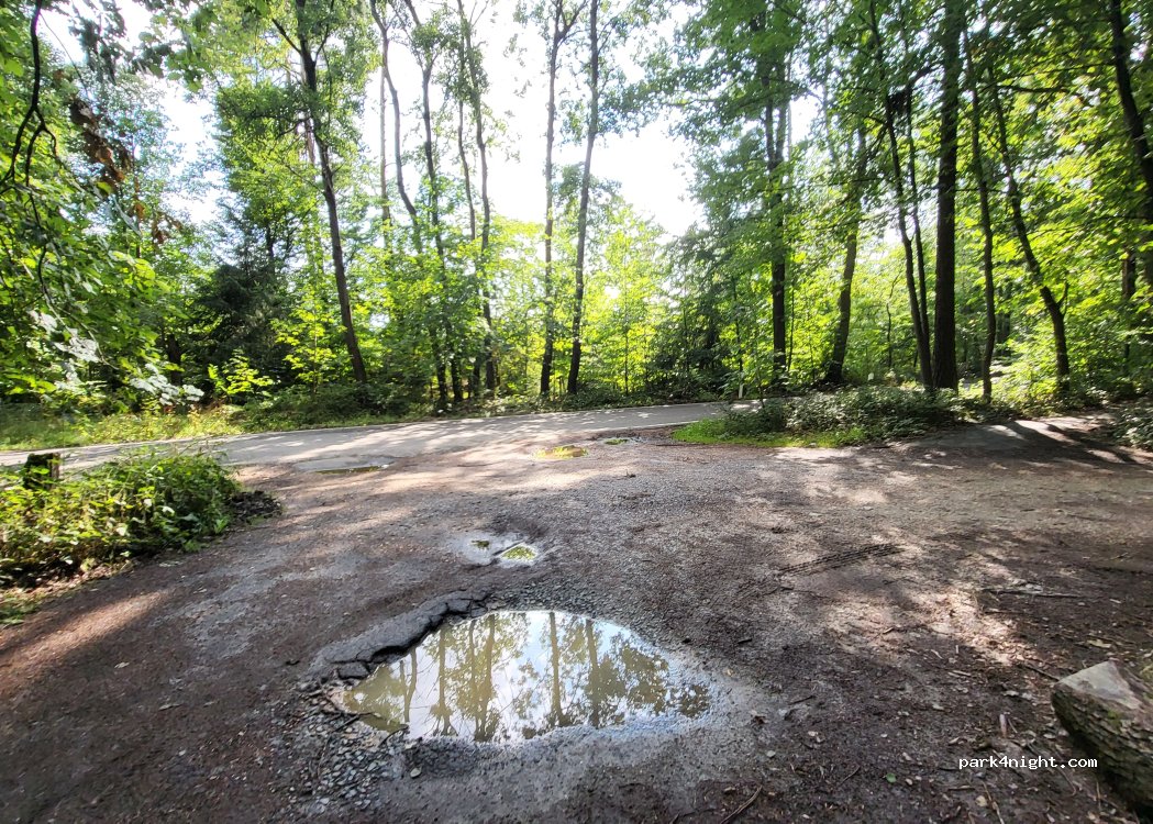 Slightly sloping parking lot on a quiet road