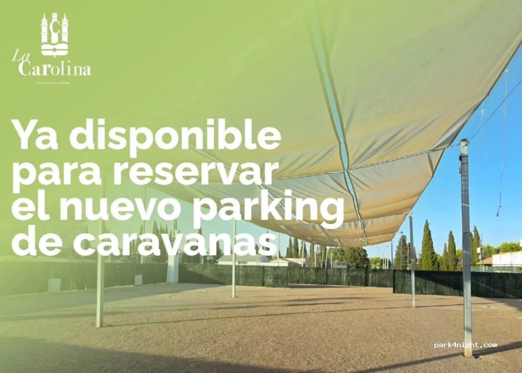 Se trata de un área nueva de pernocta en la localidad de La Carolina pero la reserva no es gratuita, su precio es de 15,61 € por noche (checkin 12:00 y checkout 12:00). Junto al recinto ferial en una zona tranquila. El número de plaza son 12 y el acceso a la zona es autónomo con reconocimiento de matrícula.