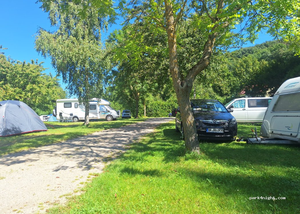 Wir haben ohne Reservierung mit unserem Bus einen Platz auf der Zeltwiese direkt am Schwimmteich bekommen. Sanitäranlagen sind Top! Kosten für 2 Erwachsene mit Hund 22€/Nacht. Alles in allem sehr empfehlenswert.