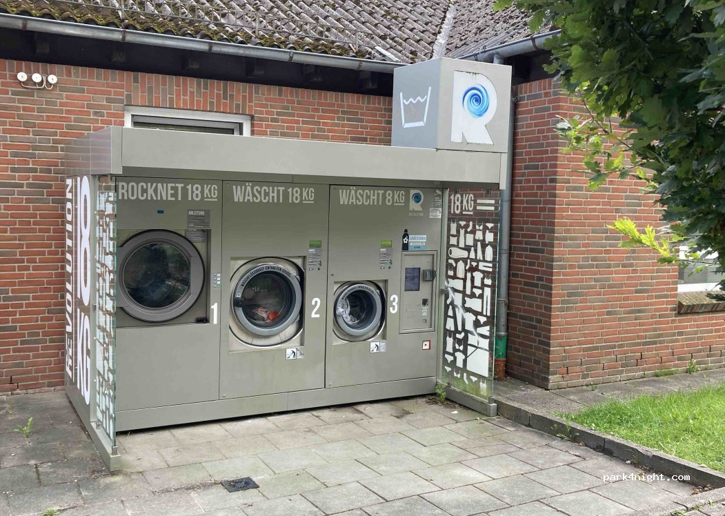 Une machine à laver de 8 kg et une de 18 kg et une de 18 kg pour le séchage. Parking de l'autre côté de la route.