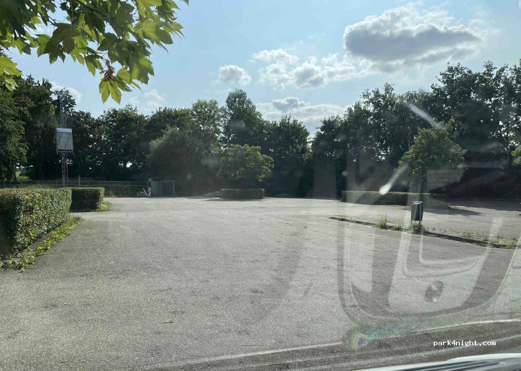 Parkplatz des örtlichen Schwimmbades Mosaqua. Mehr als genug Platz für große Wohnmobile.