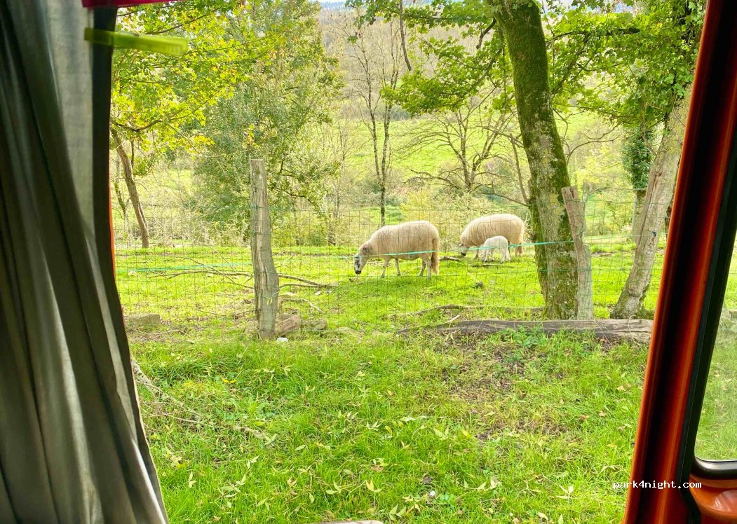 Top! vue sur les pâturages et entourés de biquettes et de vaches, la nuit fut bonne. on laisse ce qu'on veut. Pas d'obligation de paiement ou de contact avec le propriétaire, tout est basé sur la confiance. il est indiqué qu'en moyenne les gens donnent 5€ pour une nuit avec eau et 10€ pour un nuit avec électricité.. il y a des toilettes sèches, des points d'eau et meme une machine à laver.