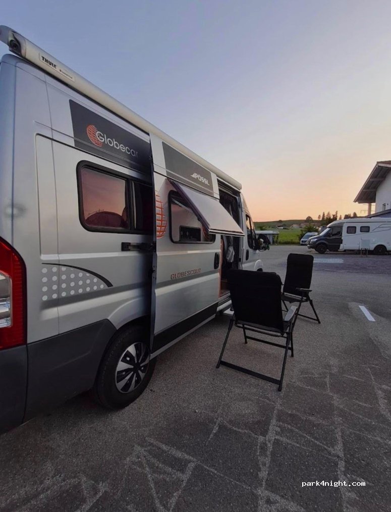 Hem estat dues nits. Hi ha dues zones de camping-car a 10min que estaven plenes, i vam venir aquí. Un encert!! Parcel·les espaioses, planes i delimitades, pots acampar (toldo, taules, cadires…). Hi ha WC’s molt nets! Les dutxes es paguen a part. Accés 24/7 automatic a la maquina expenedora, que com no només té alemany i anglès com a idiomes. Tots els serveis, però no li poso 5* pel preu, no és barat. AC+2adults+1nen+5€ electricitat 34€. La segona nit 24. Electricitat a 0,85€/kWh (extremadament cara), uns 6€/dia amb el consum de nevera i alguna cosa més. Tot i així és molt recomanable. Hi ha carril bici a la porta i pots anar a fer varies rutes pel llac. recomanable portar tovalloles i banyador, és un paratge preciós! Al mateix poble hi ha un parc molt xulo per infants i un minigolf (pagant).