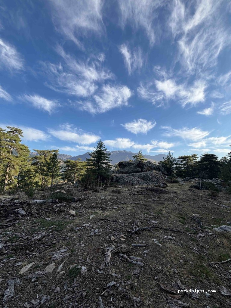 Clairière avec vue sur la montagne. Chemin accessible avec 4x4 facilement, avec d’autres véhicules possible peut être mais faire attention… Route un peu longue. Arrivés sur place pas de moustique ! Donc nuit très agréable ! Avec un grand espace pouvant accueillir plusieurs véhicules. Super nuit !
