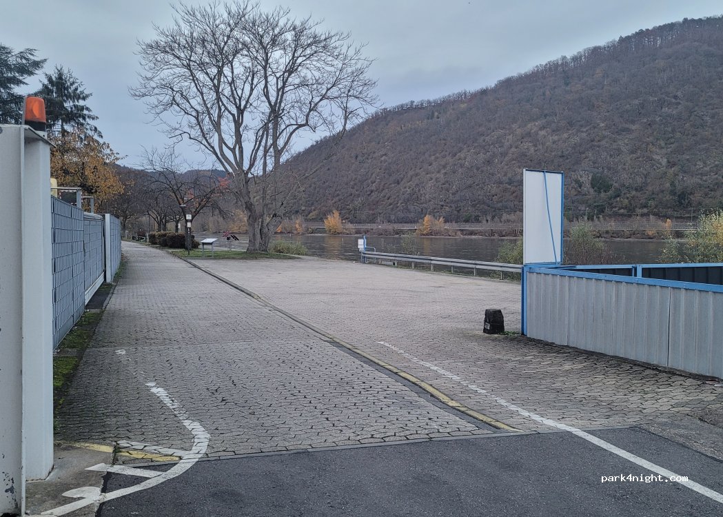Una hermosa parcela pavimentada con vistas directas al Rin, con capacidad para unas cinco autocaravanas. El acceso está reservado para autocaravanas más pequeñas.