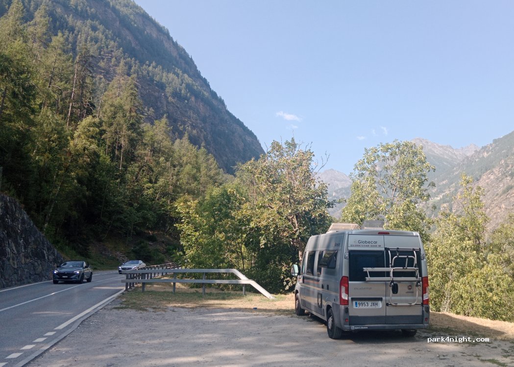 No es el mejor sitio. Sin nivelar y al lado de una carretera con tráfico, pero está de camino a Zermatt y no tiene prohibiciones. Válido para una urgencia.