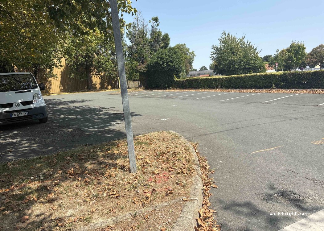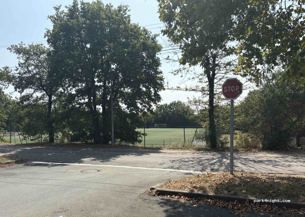 Parking près d’un étang et d’un complexe sportif , calme, toilettes publiques.