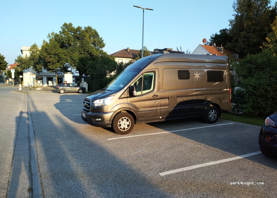 Parkplatz in Wohngebiet, ca. 10 Plätze für Womos bis 7 m. Mo-Fr von 8-18 Uhr 2 Stunden mit Parkscheibe, nachts und am Wochenende frei. Mehrere Restaurants in unmittelbarer Nähe. Keinerlei Ver- oder Entsorgung.