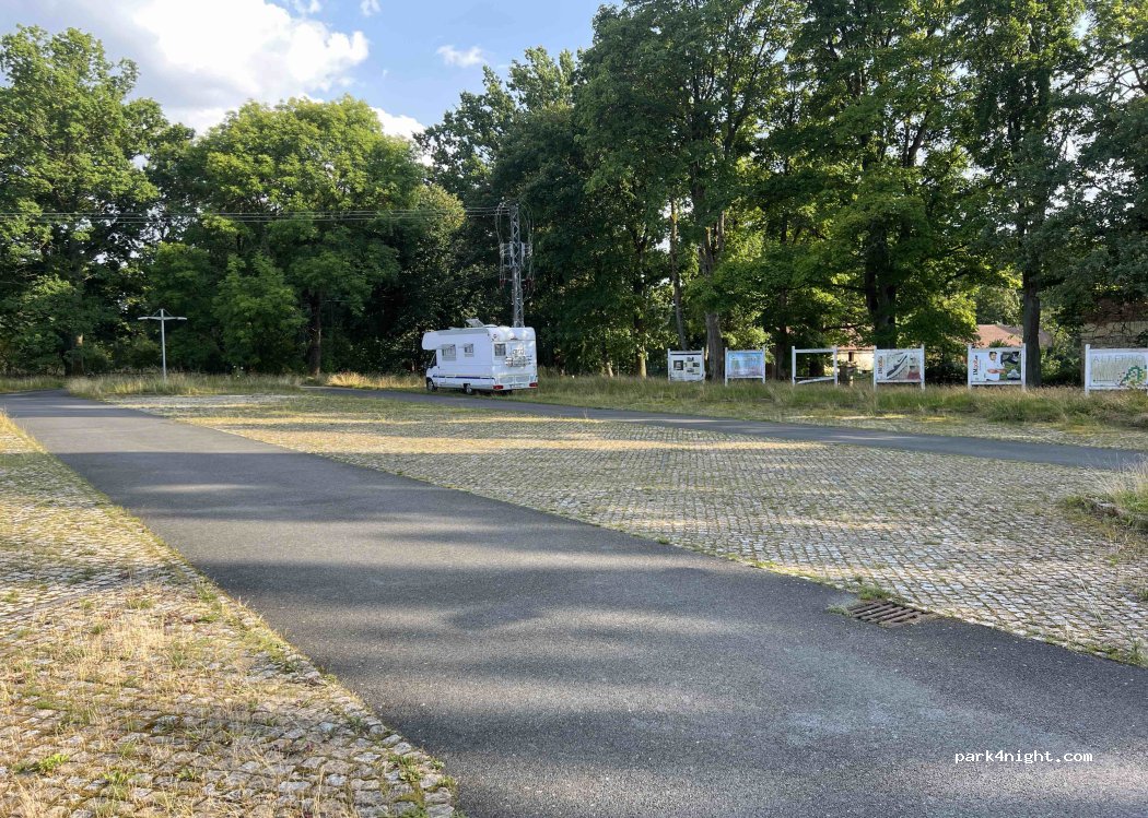 Parkoviště u golfového hřiště. Golfové hřiště již je dlouho opuštěné. Parkování zdarma. Blízko k zámku. Velmi klidné místo pro přespání.