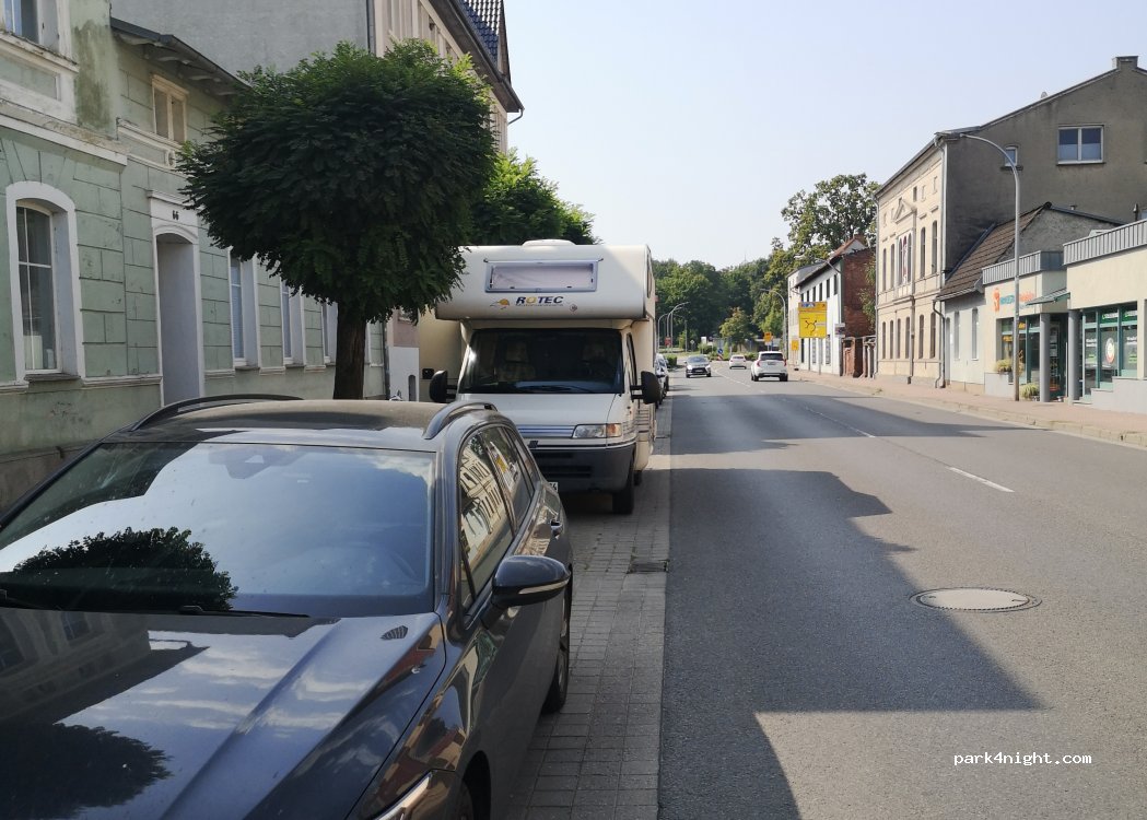 Direkt an der Straße. Das Wohnmobil sollte nicht breiter als 2,20m sein. Zentrumsnah, viele Einkaufsmöglichkeiten